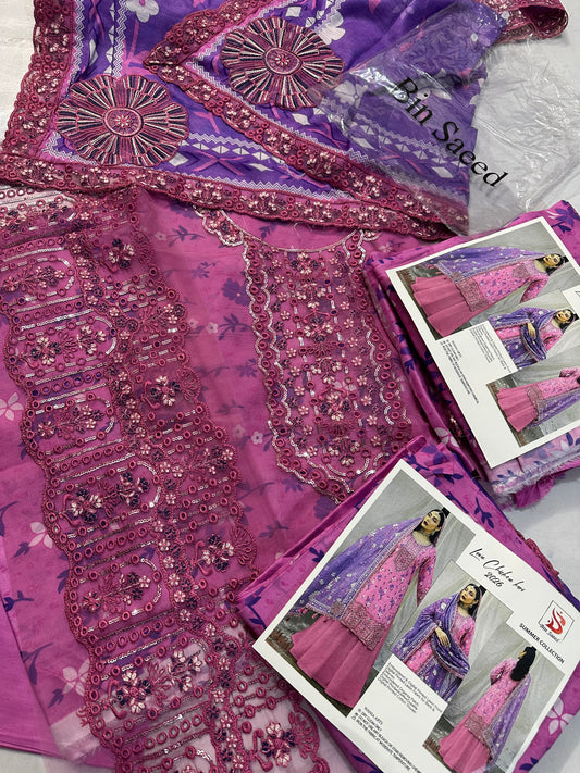 Refresh your summer collection with this beautiful Dhani color Johra lawn 2-piece dress, featuring full...