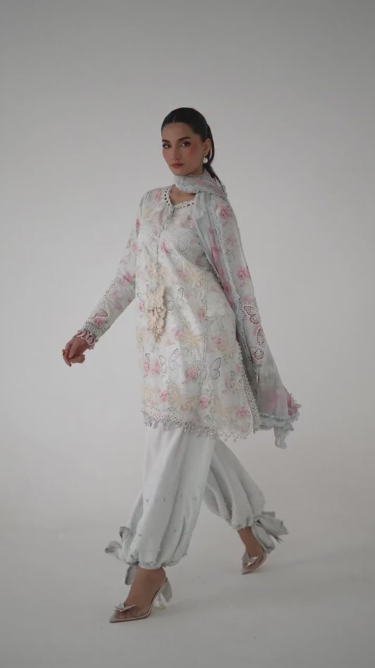 Step into elegance with our Viral Jora Print Grey Butterfly Embroidered Dress, designed for women...