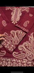 Asim Jofa Maroon 2Pc Dress – Heavy Front & Sleeve Embroidery with Plane Trouser & Danak Wool