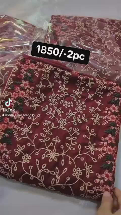 Attractive Maroon Johra Chikankari 2PC Lawn Dress – Heavy Front Embroidered with All-Over Chikankari & Plain Trouser