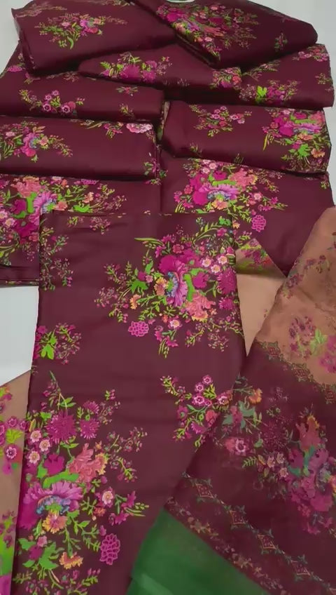 Baroque All-Over Print 3-Piece Air-Jet Lawn Suit with contrast trouser or 2tone printed duppta