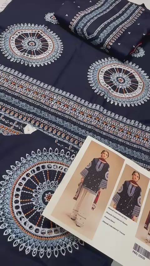 Jasmine 3-Piece Danak Dress – Soft Embroidered Shirt, Heavy Sleeves, Embroidered Trouser & Printed Wool Shawl