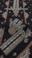 Premium Jet Black Bareeze Lawn 2-Piece Suit with Side Motif