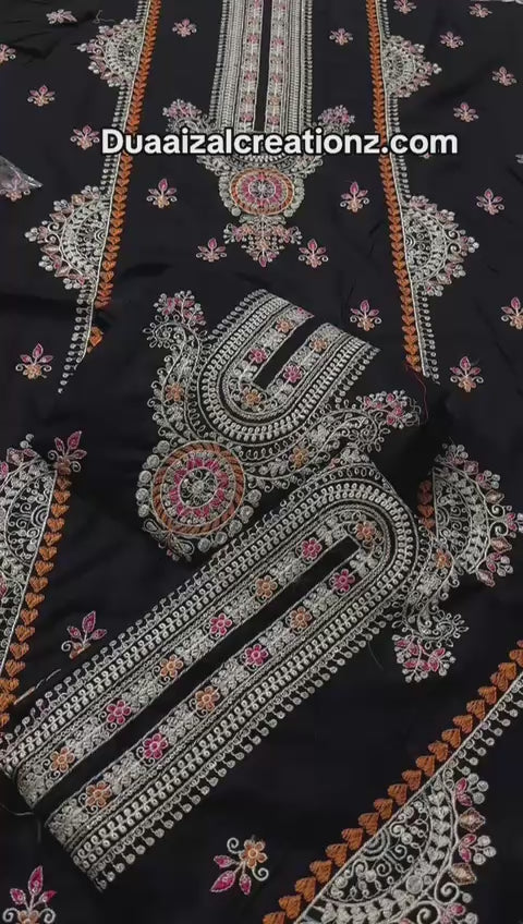 Experience timeless elegance with this jet black Bareeze lawn 2-piece suit, featuring a beautifully detailed long neck embroidered design complemented by a delicate side motif. Crafted from high-quality breathable lawn, the shirt pairs perfectly with a plain matching lawn trouser, making it ideal for both casual and semi-formal wear.